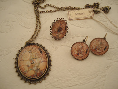 ResponderEliminarMaría... no me lo puedo creer... ja ja.... acabo de publicar una entrada también de Klimt, y cuando voy a ver cómo se ve mi blog me veo al lado otra tuya... ja ja... tenemos telepatía.......Pues debo decirte que también es uno de mis pintores favoritos, y que tu colección de piezas es increíblemente bonita y delicada, preciosa, como todo lo que haces.
